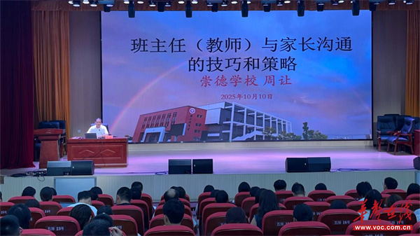 华声在线10月11日讯(通讯员 周大欢 欧林杰 王永明)10月10日晚,宁远一中崇德学校聚焦班主任能力提升,组织开展专题培训活动,全校班主任全员参与,共同探索家校协同育人新路径。本次培训由学校教科室主任崔家宝主持,党委副书记、校长周让担任主讲。