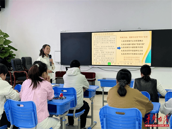 讲解结束后,“悟真数学”集备团队现场展示根据前期AI数据分析报告及磨课实践成效对教学设计进行修改完善的过程,为教师们提供了可复制的实践模板。