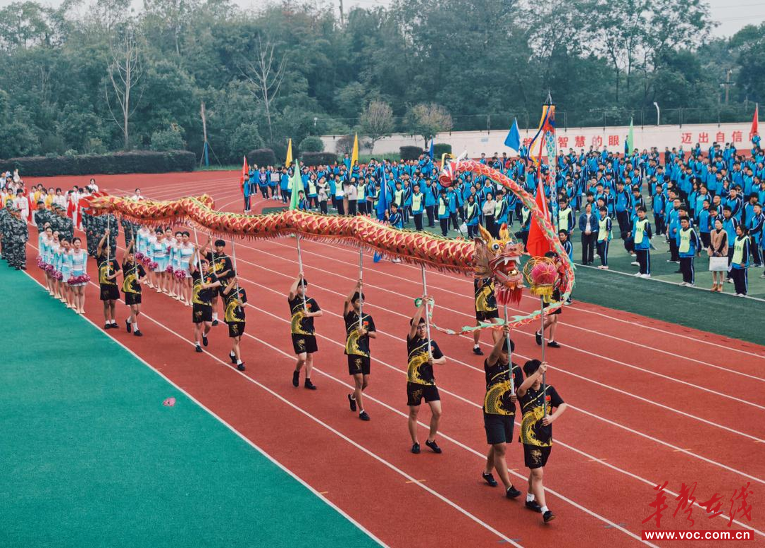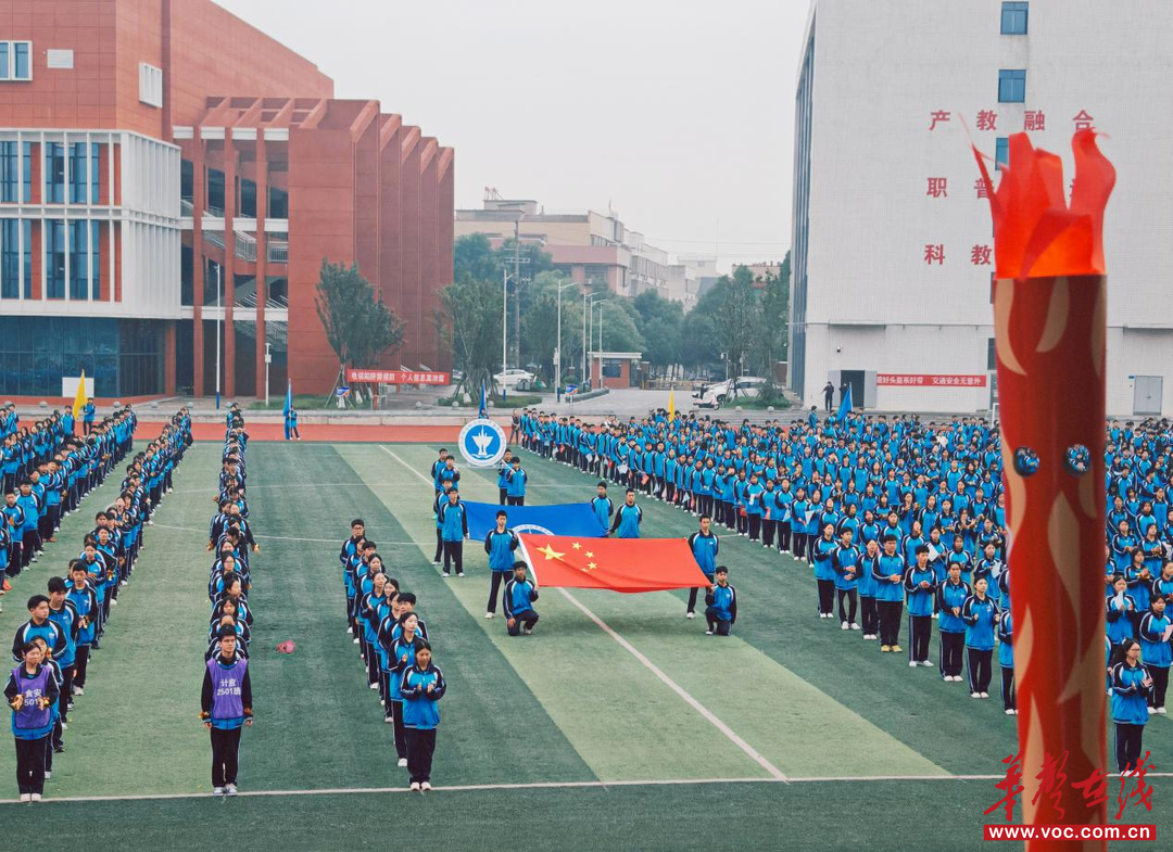 在全场期待中,校长黄定庄严宣布:“长沙市望城区职业中专第六届体育节,开幕!”圣火燃起,掌声雷动,标志着这场青春与体育的盛宴正式开启。