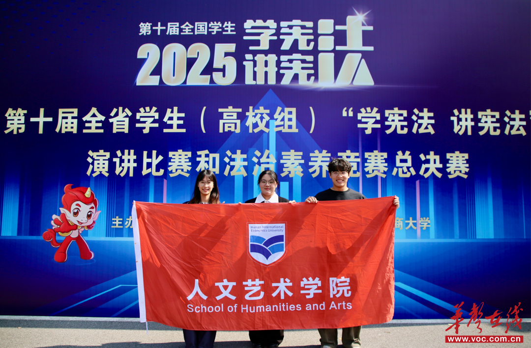 华声在线11月6日讯(通讯员 李倩 龚钰婷 供图 王熙浩)11月5日,第十届湖南省大学生“学宪法 讲宪法”演讲比赛暨法治素养竞赛总决赛在湖南工商大学落下帷幕。经过多轮激烈角逐,湖南涉外经济学院人文艺术学院法学2507班万芊芊同学凭借扎实的专业功底、沉稳的现场表现和出色的综合素养,从众多选手中脱颖而出,荣获省级一等奖。