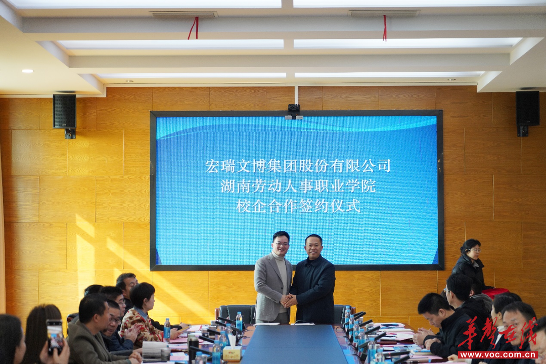 华声在线1月7日讯(通讯员 侯俊)1月6日上午,湖南劳动人事职业学院与宏瑞文博集团股份有限公司在学院视频会议室举行“文博售后服务工程师”“文博讲解员”订单班签约仪式暨产教融合座谈会。学院党委副书记、院长钟秋明,宏瑞文博集团董事长徐武洪等校企双方代表共同出席,围绕深化人才培养合作、创新产教融合模式、共育文博行业高素质人才等议题展开深入交流,达成广泛共识。