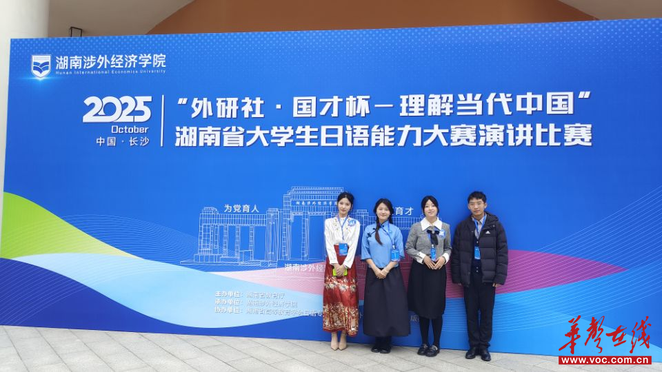 华声在线11月19日讯(通讯员 张赡之)近日,由湖南省教育厅主办、湖南涉外经济学院承办、湖南省高等教育协会日语专业委员会、外语教学与研究出版社协办的2025年“外研社·国才杯·理解当代中国”湖南省大学生外语能力大赛(日语组)湖南赛区演讲比赛获奖结果已正式公布并完成公示。在此次比赛中,湖南涉外经济学院日语专业学子沉着应战、发挥出色,斩获多项荣誉:2024级汪璟希同学荣获个人二等奖;2024级杨欣怡、陈欣宇分获个人三等奖。凭借优异表现与团队协作,我校参赛选手获团体三等奖,充分展现了我校学子优秀的专业素养、竞技风采。