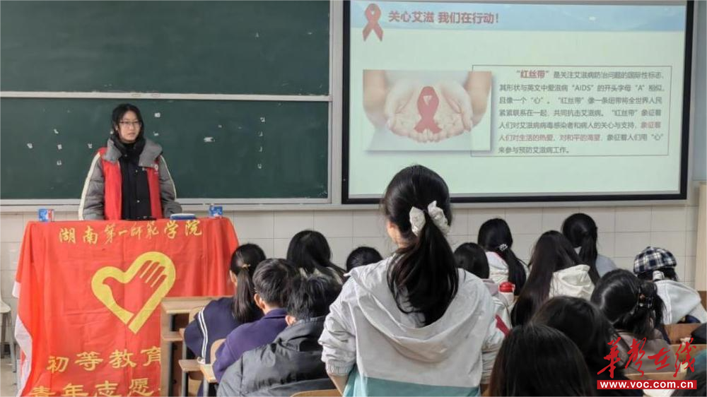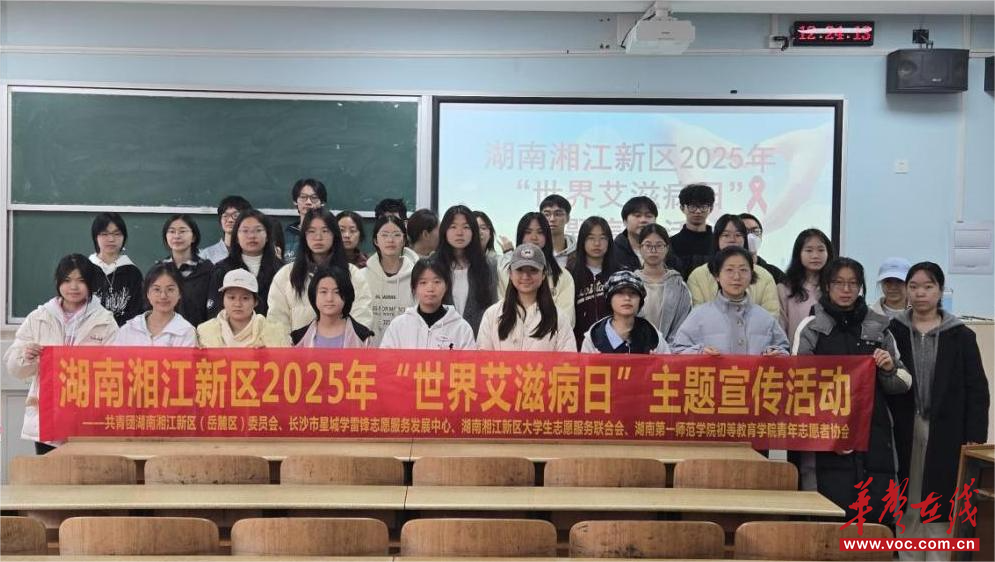 华声在线12月15日讯(通讯员 冯择佳 吴清华)为切实提升在校学生防艾知识储备与健康防护能力,近日,在共青团湖南湘江新区(岳麓区)委员会指导下,湖南第一师范学院初等教育学院青年志愿者协会联合长沙市星城学雷锋志愿服务发展中心、湖南湘江新区大学生志愿服务联合会,走进校园开展湖南湘江新区2025年“世界艾滋病日”主题宣传活动。