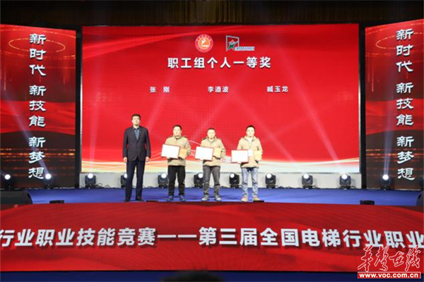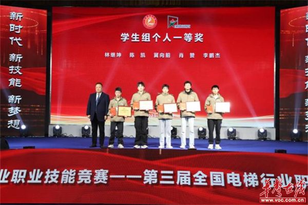 来自全国25个代表团的160名参赛选手,经过三天的激烈角逐,最终决出职工组团体一等奖3个、二等奖8个、三等奖10个,学生组个人一等奖5人、二等奖10人、三等奖12人,职工组个人一等奖3人、二等奖20人、三等奖32人。其中,邵阳职院电梯工程学院电梯工程技术专业1212班林继坤获学生组一等奖第一名,电梯工程技术专业1211班肖赞获学生组一等奖第四名,电梯工程学院教师郭鹏、李文滔获职工组个人二等奖。