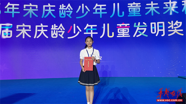 华声在线8月19日讯(通讯员 胡艳)8月14日至17日,由中国宋庆龄基金会、中国科学技术协会共同主办的2025年宋庆龄少年儿童未来科学日暨第二十届宋庆龄少年儿童发明奖颁奖活动在河北雄安新区举行。岳塘区火炬学校1912班刘晨萱同学凭借作品《新型交通信号提醒装置的研究与设计》,一路过关斩将,最终斩获此次比赛金奖。