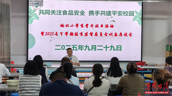 华声在线9月30日讯(通讯员 杨平红 刘莉)为进一步落实校园食品安全主体责任,深化家校协同育人机制,让家长全面了解学校食堂管理与学生膳食情况,9月29日上午,安乡县城北小学开展了“食堂开放日暨膳食监督家长委员座谈会”主题活动。40余名家长代表走进校园,实地参观食堂操作间、体验学生餐食,与学校共话“舌尖上的安全”,共同为孩子们的健康成长保驾护航。