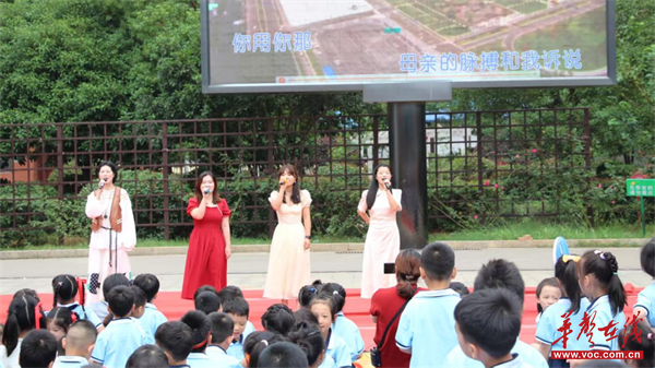 孩子们的每一次成长,都离不开老师们的辛勤耕耘与温暖引领。在同学们精彩的展演后,学校的音乐教师们闪亮登场,为全体师生献上了一曲深情的《我和我的祖国》。