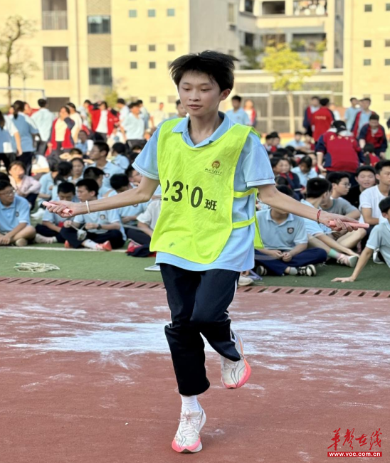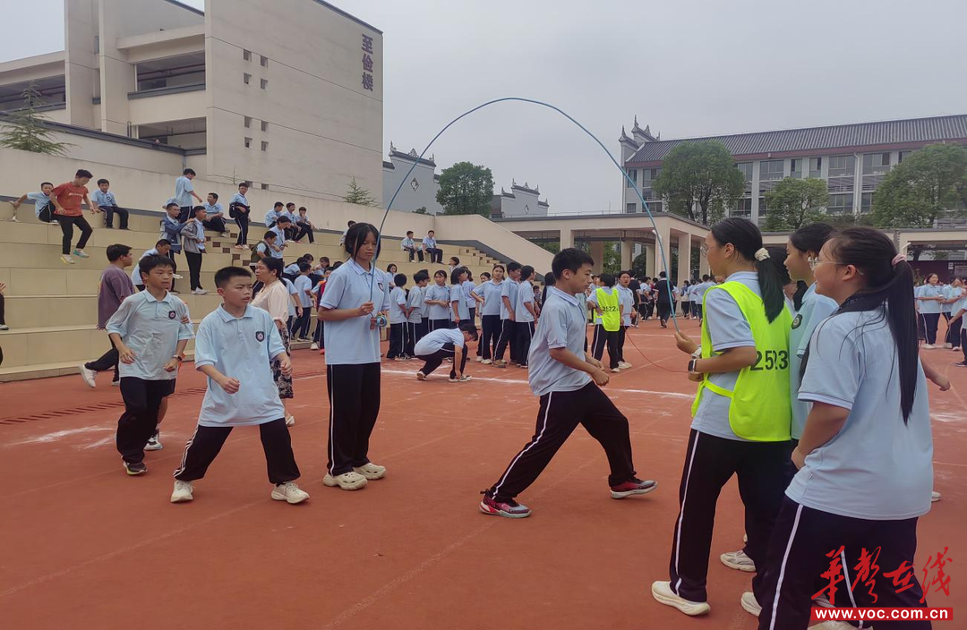 比赛设置30秒跳绳、1分钟跳绳、三分钟集体跳绳及表演赛四个项目。各项目按“先个人后集体、先女生后男生”的顺序有序推进,七、八、九年级分区域开展比拼,赛场之上,绳影翻飞,喝彩不断。