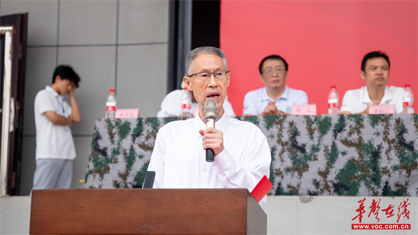 尹万建代表湖南汽车工程职业大学向克服各种困难、圆满完成军训任务的全体2025级新同学表示热烈祝贺,向军训期间尽职尽责、付出辛勤汗水的全体教官、工作人员和辅导员表示衷心感谢。面对即将开启的大学之旅,尹万建深情寄语全体新生,要以家国情怀锚定青春航向,积极发扬军训精神与优良作风,在专注理论学习的同时,也要聚焦专业技能的提升,力争文化素质不低于应用本科,技能水平高于应用本科,确保升学有出路,就业高质量。
