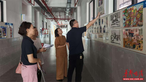 实地察看环节,督查组聚焦 “一班一品”特色建设,在校长颜陈斌讲解下于班级外围驻足。国防教育班外,展板上的国防知识图谱和知识,可见学生分组开展“军事小课堂”;心理成长班外,“情绪树洞”留言角,颜陈斌介绍通过“同伴互助 + 心理日记”疏解学生情绪;书香班外,图书角与“阅读手账”透出浓厚氛围。在询问了项目细节后,欧阳小珠肯定道:“‘一班一品’贴合成长需求,厚植家国情怀、守护心理健康、涵养品格,精准践行‘全面育人、特色发展’理念。”