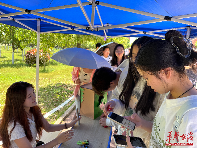 线上,学生们开设直播间,热情洋溢地推介来自靖州、张家界、平江等地特色农产品。线下,他们在校园里摆起地摊,将线上流量引至线下,进行实物展示和推广。参赛团队队长2024级跨境电商专业学生王锦鸿介绍:“这次比赛既要考虑农产品卖点,又要设计校园互动玩法,这对我们的市场洞察力和执行力都是巨大考验。”