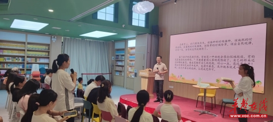 发布会上,梁进围绕“教育的本质是爱与唤醒”这一核心观点展开阐述。他提出,当教育回归“聆听”,减少焦虑、过度干预与过高期待,尊重每个孩子独特的成长节奏,便能收获教育的惊喜。他带领读者走进充满自然气息与人文关怀的教育世界,从“与新生美好相遇”“与学生心灵对话”等章节,生动描绘了师生间的情感交流与心灵共振,凸显倾听、鼓励与情感共鸣在教育中的关键价值。书中记录的寻宝游戏、经典诵读、剧本表演等教育生活场景,更是让现场观众感受到师生成长的温馨时光,体会到教育的温暖与力量。
