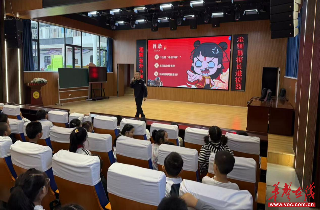 华声在线10月17日讯(通讯员 李洁琴)为进一步增强学生的法治意识和自我保护能力,营造平安、和谐、文明的校园环境,10月14日下午,常德市武陵区旭辉东升小学邀请武陵公安分局启明派出所民警走进校园,为孩子们带来了一场生动而实用的“防电信诈骗”专题法治教育课。