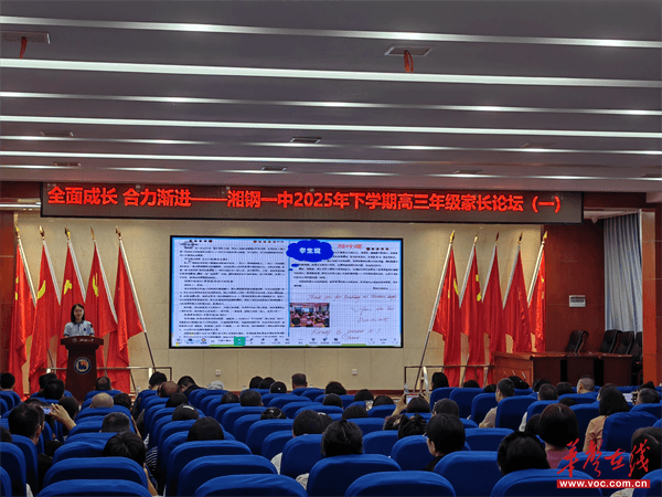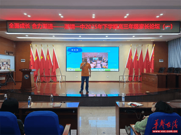 华声在线10月20日讯(通讯员 李兰兰 供图 余轲)为深化家校协同育人机制,凝聚教育合力,近日,湘钢一中举行了以“全面成长·合力渐进”为主题的高三年级第一期家校交流会。会议由学校工会主席陶继本主持,特邀2022届两位优秀家长代表、政教处及高三年级德育班级管理团队、高三年级各班学生以及高一高二部分班级的长参加,围绕新高考背景下的学生成长策略展开深度交流,共同为钢中学子的全面成长搭建坚实后盾。