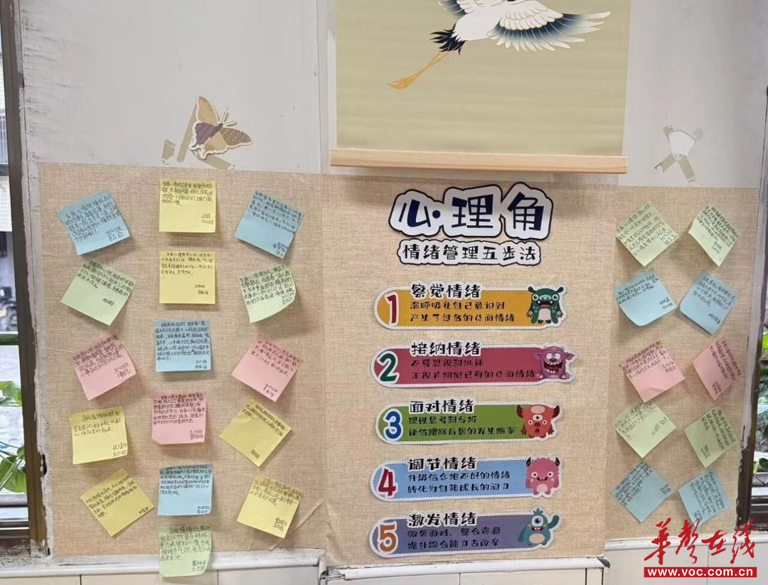 本次评比中,各班教室化身充满生命力的“教育场域”,将“环境是第三位老师”的育人智慧融入细节。其中,“心理角”与“心灵驿站”成为亮点:“情绪管理五步法”引导图、“九种放松技巧”指南及“树洞信箱”,构建起心理健康教育的常态化阵地,让学生的情绪被看见、感受被重视。