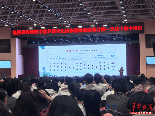 华声在线10月20日讯(通讯员 马霞娟)10月18日,由隆回县教师进修学校组织的隆回县教师数字素养模块化研修整校推进项目首次线下培训在军杰食品科技有限公司举行。来自桃花坪街道中心学校、万和实验学校、九龙学校、思源实验学校、滩头镇中心学校的近1500名教师参加培训,共同开启教师数字素养提升新篇章。