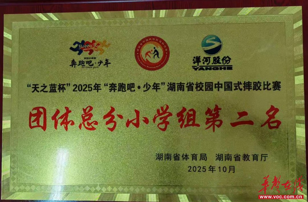 华声在线10月20日讯(通讯员 廖文胜 范贤勇)随着裁判的一声哨响,隆回县东方红小学选手周子喻以一个漂亮的过肩摔将对手稳稳控制住,赢得了全场喝彩。这是10月19日在湘乡市第二中学举行的“天之蓝杯”2025年“奔跑吧·少年”湖南省校园中国式摔跤比赛决赛中的一幕。来自隆回县东方红小学的周子喻,这位年仅10岁的少年,已经连续三届站上了这项赛事的最高领奖台。