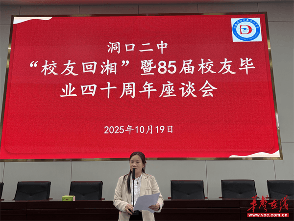 华声在线10月20日讯(通讯员 刘登贤 洪京 王爱姣)为深化校友情谊,汇聚发展力量,10月18日,洞口二中举办了2025年“校友回湘”座谈会,邀请85届校友在毕业40周年之际重返校园,共忆青春岁月。会议由副校长王爱姣主持