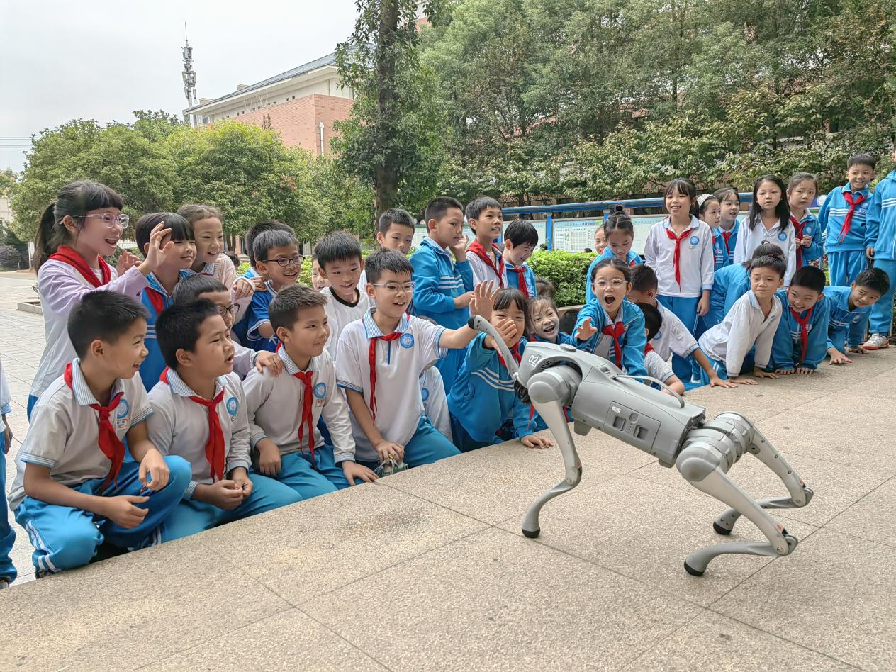 活动一开始,灵活的机器狗表演就牢牢抓住了所有孩子的目光!在老师们的操控下,机器狗奔跑、转身,做出一连串机智灵敏的动作,引得展厅内惊叹连连,掌声不断。孩子们在与高科技产品的亲密接触中,真切感受到了人工智能的魅力。