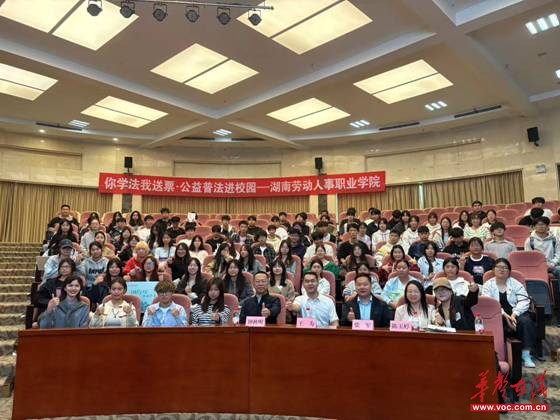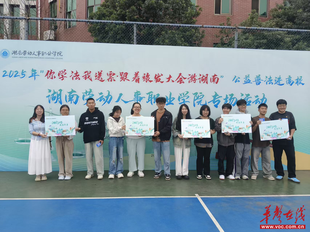 华声在线10月20日讯(通讯员 张军)近日,2025年“你学法我送票·跟着旅发大会游湖南”公益普法进高校专场活动在湖南劳动人事职业学院举行。省教育厅政策法规处四级调研员王为、学院院长钟秋明、学院党委副书记李啸川出席活动。