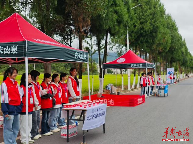 当天早晨五点,志愿者队伍便已启程前往各自岗位。在起点区域,志愿者们负责检票、人车分流、起跑带管理等工作,确保选手安全有序出发;在沿途各指引点和补给站,他们以亲切的笑容和热情的服务,为选手提供方向引导、饮水补给与能量支持等服务。志愿者们在工作中有条不紊,展现了高效的组织协调能力。尤其在医疗观察方面,志愿者分路段全程值守,配合专业医疗团队构筑起一道坚实的生命安全防线。他们用热情的服务和专注的态度,给全国各地的参赛选手留下了深刻的印象,以实际行动诠释了德孝之源的宁远品牌。