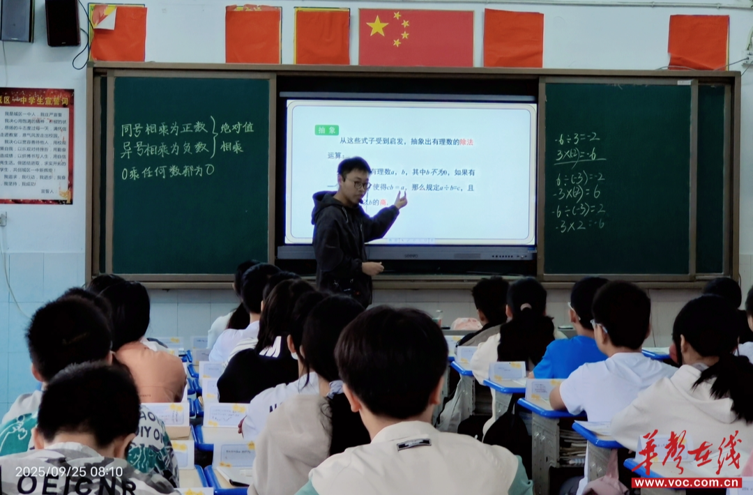 新教师依次登台,呈现出一节节精彩纷呈的汇报课:文科组赵锦亚老师与418班同学共赏《再塑生命的人》,细腻诠释文字的温度;马雪娟老师在421班讲授《陈太丘与友期行》,引领学生感悟古人的诚信智慧;周戴蓉老师则在395班的英语课堂上,用巧妙的教学设计,让英语知识生动“活”起来……理科组黄细成老师在395班讲解《相似图形》,将抽象的几何概念变得直观易懂;王献文老师在416班执教《有理数的除法》,以清晰的逻辑帮助学生构建知识体系……综合组张静老师在420班解析《家的意味》,以温情视角引导学生体悟亲情;刘思思老师在421班讲授《地球的自转》,用趣味实验让地理知识“转动”起来……每一堂课都凝聚着新教师的思考与探索,也见证了他们从初登讲台到自信执教的成长轨迹。