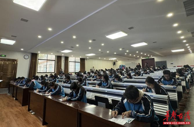听写比赛分为选拔赛和决赛两个阶段。10月16日,听写选拔赛如期举行,全校学生踊跃参与,不少高三学生也慕名参赛,最终选拔出195名优秀选手进入决赛。20日中午,听写决赛正式开启。参赛选手有序落座,赛场氛围肃静紧张。笔落纸端的“沙沙”声,唤醒的不仅仅是大展身手、一决胜负的青春梦想,更是勤学勤记、埋头耕耘的奋进决心。