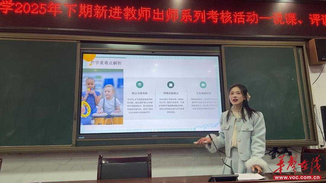 华声在线10月22日讯(通讯员 肖文彬)为全面提升新教师专业素养,夯实教学基本功,宜阳小学于2025年10月20日至23日成功举办了新进教师说课、评课专项考核活动。本次活动是学校新教师出师考核系列的重要组成部分,旨在通过教学核心能力的评估,助力教师专业成长。