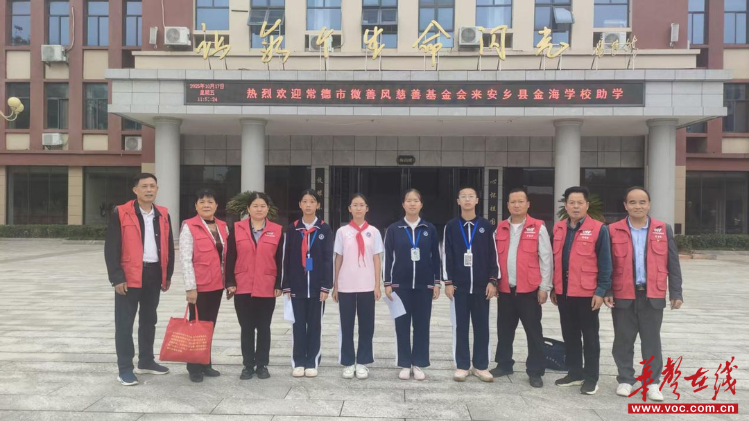 华声在线10月22日讯(通讯员 刘文雨)近日,常德市微善风慈善基金会走进安乡县金海学校,为该校定向资助的6名品学兼优的学子颁发共计9450元专项奖学金。这份来自社会公益的专属嘉奖,既是对学子们勤勉笃行的充分肯定,更为他们逐梦求学的征程注入了温暖而坚实的力量。