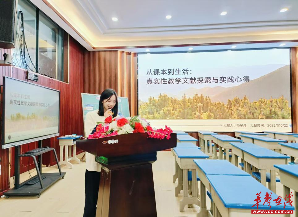 工作室成员、芦淞区骨干教师杨宇舟作了《从课本到生活:真实性教学文献探索与实践心得》的文献研究学术报告。她梳理了有关真实性教学的文献,同时介绍了她在日常教学实践中的相关探索。