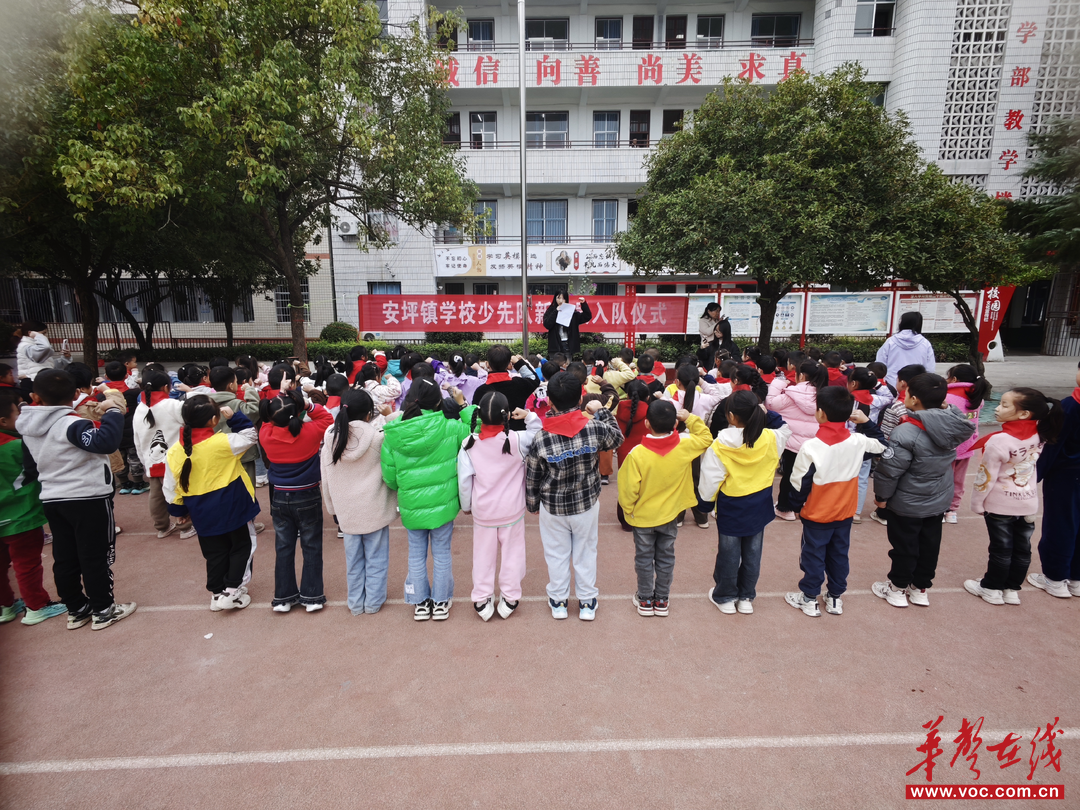 华声在线10月23日讯(通讯员 郑瑞涵)10月20日,辰溪县安坪镇学校举行“争做新时代好队员”少先队入队仪式。在嘹亮的队歌声中,高年级少先队员为新队员佩戴红领巾,新队员们在队旗下庄严宣誓,光荣加入中国少年先锋队。