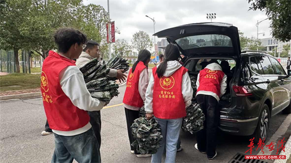 华声在线10月23日讯(通讯员 田桁雨 殷兰波)秋风送爽,迷彩传情。10月21日,由湖南汽车工程职业大学商务贸易学院牵头、商务贸易学院学生党支部精心策划组织的第二届“衣份温暖·衣份爱心”军训服捐赠活动在该校商贸大楼101室举行。305套承载着商贸新生军训记忆和深情的迷彩服,被送往株洲市八达中学,为那里的学生送去一份实用的温暖。