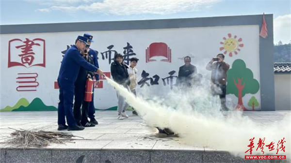 疏散结束后,演练转入“实战培训”环节。县消防队消防宣讲员聂联湖和张舒杰现场演示灭火器的操作方法,手把手指导师生如何正确开启设备、对准火源灭火,让大家直观掌握消防器材使用技巧。