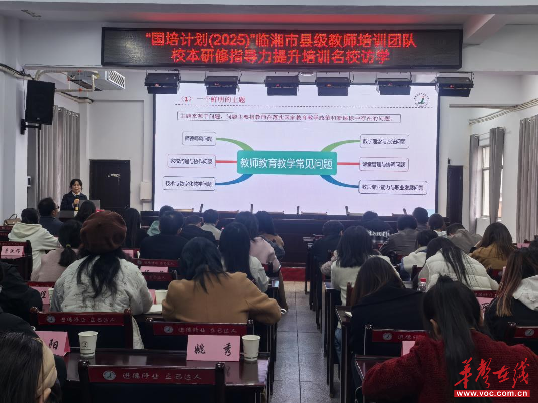 随后,活动进入专题讲座环节。桃源县教师进修学校党总支书记杨义华分享了《县域教师培训者培养与运用模式创新的十年实践》,系统回顾了桃源县教师进修学校在教师培训者队伍建设方面的探索历程与经验成果。紧接着,李腊先带来了《基于成果导向的精准培训策略》专题指导,从目标设定、过程管理到绩效评估,全面阐释了精准培训的实施路径与策略方法。