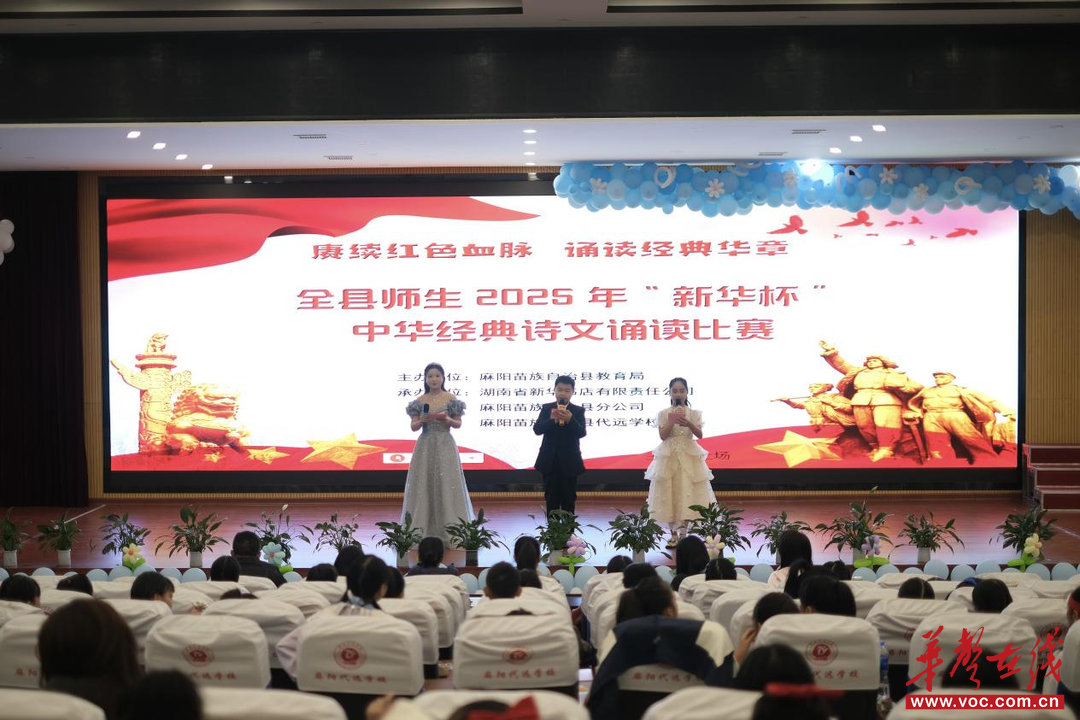 今年是中国人民抗日战争暨世界反法西斯战争胜利80周年。为铭记历史、缅怀先烈,麻阳苗族自治县教育局组织举办了以“赓续红色血脉,诵读经典华章”为主题的中华经典诗文诵读比赛,旨在通过诵读经典红色诗文,让师生深入了解抗战历史,感受革命先辈们的英勇无畏和爱国情怀,激发师生的爱国热情和民族自豪感,传承红色基因,同时提升同学们的诵读水平和文化素养。