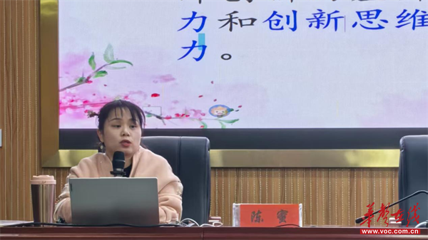 随后,五中初中部田欣怡老师对晏丽娟老师的课展开专业解读,特别肯定两大亮点:一是“唱诗引入”实现文学性与知识性融合,降低单词记忆门槛;二是“花瓣式板书”构建词汇关联网络,帮助学生快速建立知识体系,为同类词汇教学提供了可借鉴的思路。