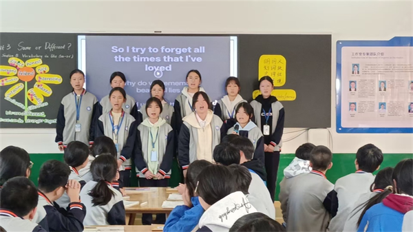 课后,五中初中部八年级学生以优美的歌声打动了现场的师生。