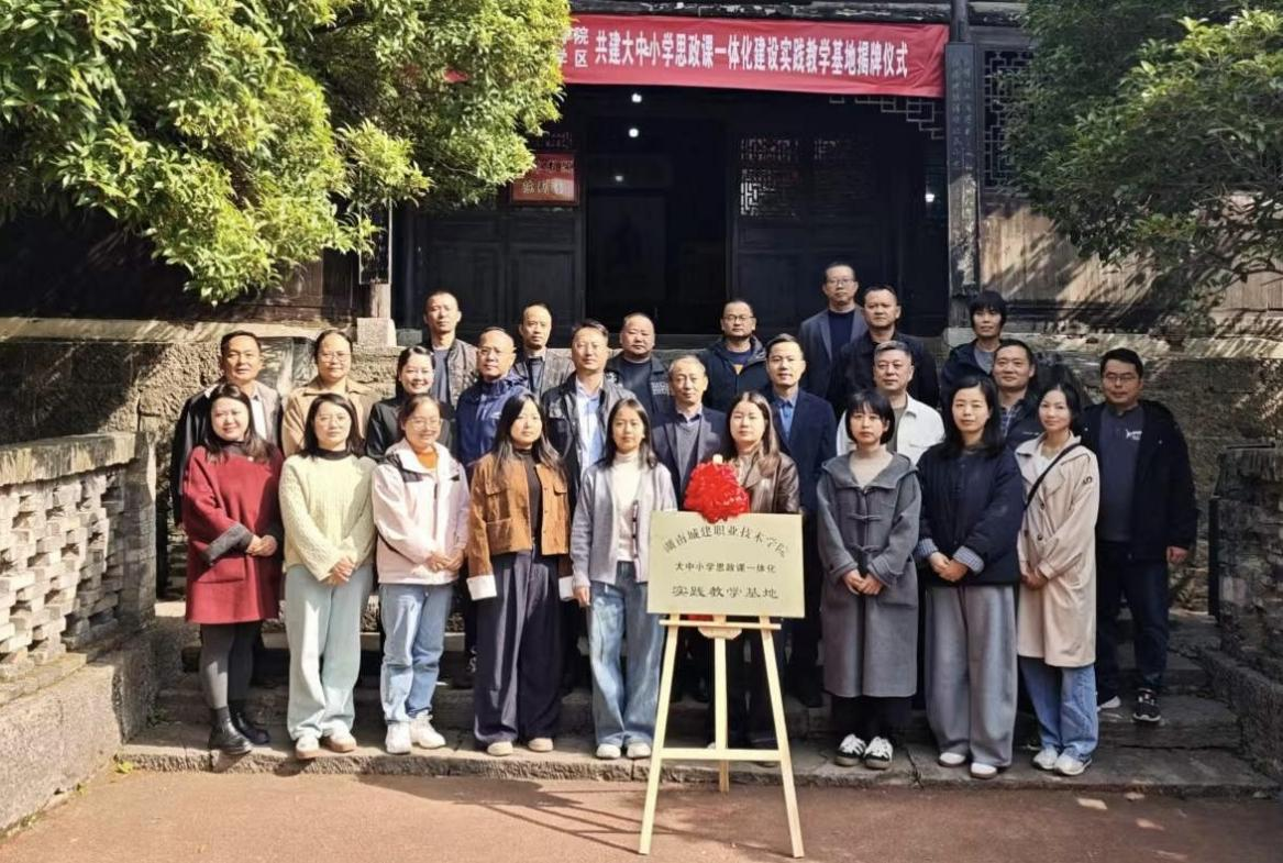思政课是落实立德树人根本任务的关键课程。湖南城建职业技术学院将以此次共建为契机,深化大中小学思政课一体化建设实践,探索构建“纵向贯通、横向协同”的育人格局。双方将重点在理论引领、课程共建、师资共育、资源共享、课题研究等方面与吉信学区展开深度合作,助力区域思政教育协同发展。随后,周劲松与吴章游共同为实践教学基地揭牌,并合影留念。仪式结束后,参会人员一同参观了吉信学区。