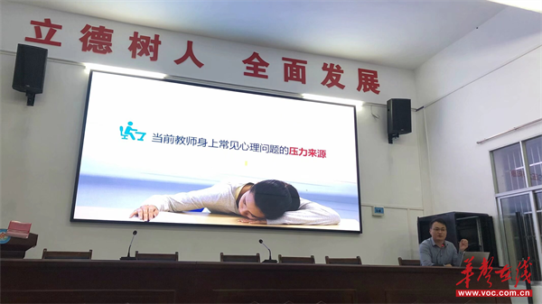 除学科教学外,他还主动兼任学校心理健康教育教师,成为学生的“心灵守护者”。每当课间或放学后,他的办公室里总会有学生驻足——有的因学业压力焦虑,有的因人际关系困惑,他总能放下手头事务,以倾听代替说教,用专业的心理疏导方法帮学生解开“心结”。两年来,他累计接待学生个体咨询百余次,还组织“情绪管理”“压力调适”等方面的教师心理专题讲座,为校园心理健康防线注入温暖力量。