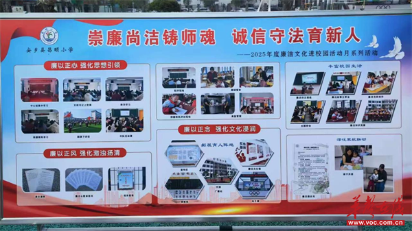 为落实立德树人根本任务,将廉洁文化融入校园精神文明建设与德育工作,10月份,安乡县昌颐小学以“崇廉尚洁铸师魂 诚信守法育新人”为主题,通过课堂渗透、活动浸润、环境熏陶三维发力,开展了廉洁文化进校园活动月系列活动,营造了 “师者以廉立教,生者以廉立志” 的校园风尚。