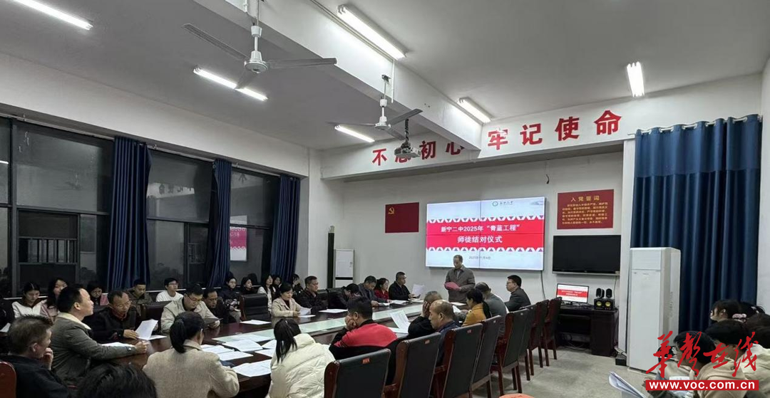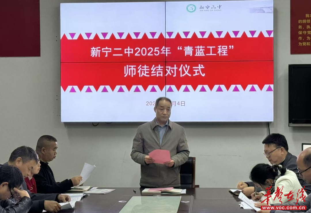 华声在线11月5日讯(通讯员 蒋梦洁)为充分发挥骨干教师的引领作用,促进青年教师成长,进一步提升学校教师队伍的整体素质,11月4日,新宁二中举行了2025年度“青蓝工程”师徒结对仪式。