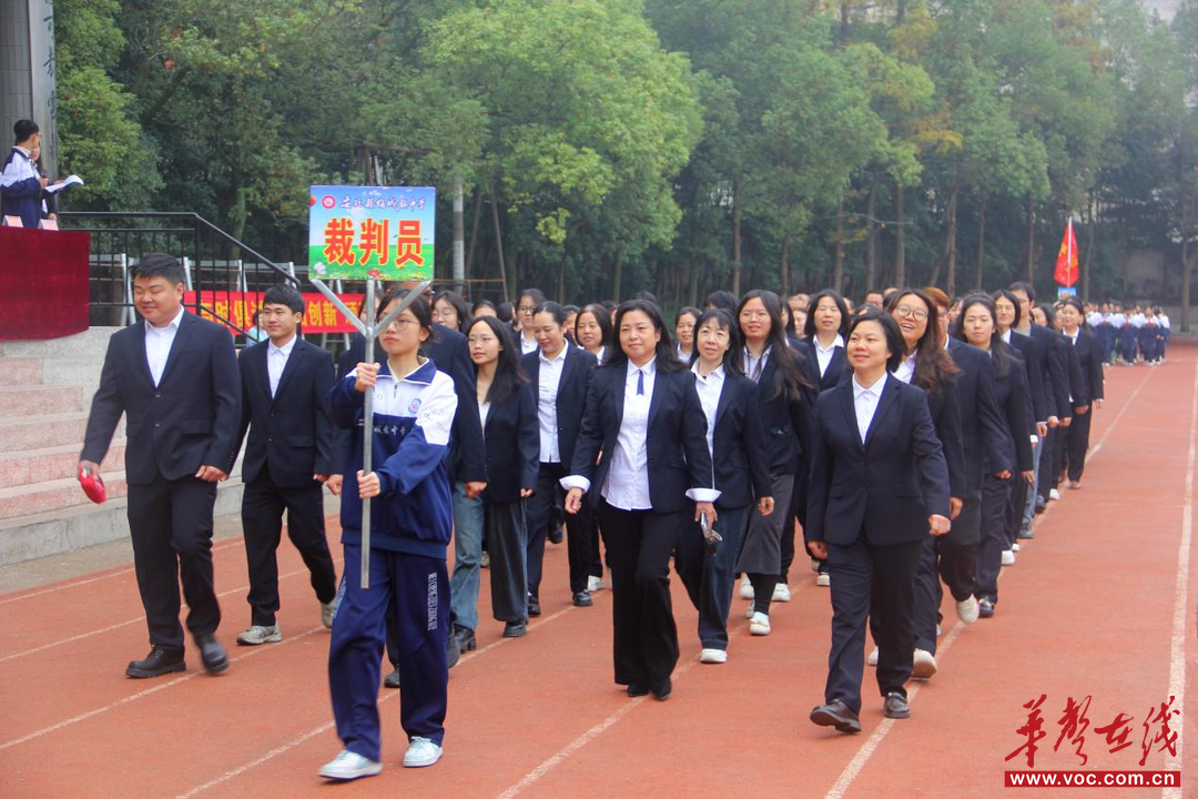 伴随着昂扬的《运动员进行曲》,国旗、会徽、彩旗、气球、裁判员5个方队率先入场。随后,40个班级方阵依次入场,各班运动员方阵迈着整齐有力的步伐依次入场,他们身着统一服装,手举特色班旗,脸上洋溢着自信的笑容。有的方阵以创意队形展现班级特色,有的喊出铿锵口号传递奋斗决心,每一步都踏满青春的朝气,每一声都彰显少年的热血,赢得现场师生的阵阵欢呼。