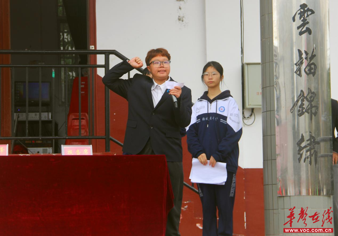 382 班周菁怡作为运动员代表宣誓,声音坚定:“我将尊重对手、服从裁判、遵守纪律,以最饱满的热情投入比赛,拼尽全力、永不言弃,展现梅中学子的最佳风采!” 简短的誓言,道出了所有运动员的决心。