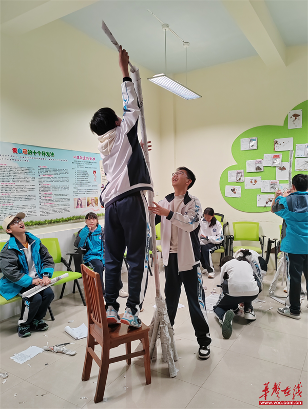 华声在线11月6日讯(通讯员 梁平)近日,常德市第七中学初中心理社团以“创意搭建,快乐协作”为主题,成功开展“报纸搭高塔”实践活动。同学们以小组为单位,用报纸和胶带化身“建筑设计师”,在实践中展现团队协作能力与创新思维,收获成长与快乐。