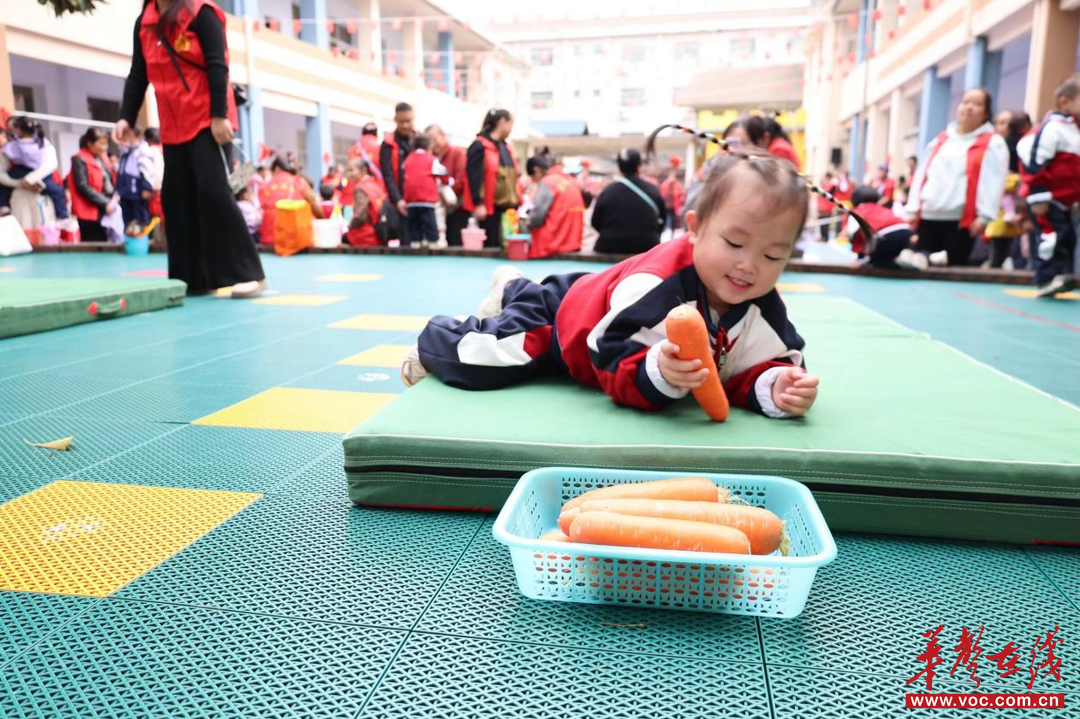 最让人期待的是具有趣味性和挑战性的农耕体育项目,包括“翻滚吧胡萝卜”“花生大作战”“运粮入仓”等趣味体育项目。孩子们在玩乐中锻炼协调力、培养团队精神,在一个个趣味项目里活力迸发。家长们也仿佛回到了童年,与孩子一起奔跑、欢笑,整个操场变成了一片欢乐的海洋。