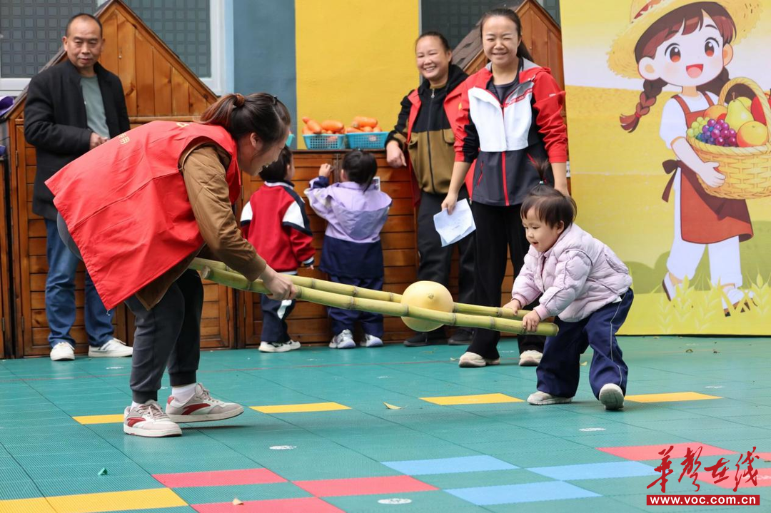 华声在线11月6日讯(通讯员 阳露)“宝贝,快把‘柚子’运过来!”“爸爸,再快一点!”清脆的童声与爽朗的笑声交织着,顺着主园操场的风传遍每个角落。为让孩子们亲近自然、感知秋收意义,搭建亲子互动的欢乐平台,11月5日,芷江二幼举办了以“秋收冬藏•萌动赛场”为主题的第十一届阳光体育节。