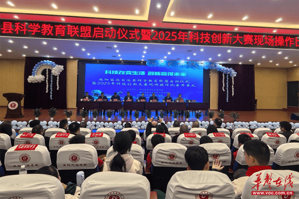 杜越峰在致辞中,将科技比作“播种希望的种子”,把联盟喻为“滋养创新的沃土”;评委组总组长傅嘉长以铿锵誓言,承诺守护每一份创想的纯净与公平;学生代表目光坚定,誓言如星火,点燃了全场青春的激情;张梅则以智慧之声,赞誉联盟成立为县域科教协同注入了强劲动能,并勉励师生以探索为舟、以创新为桨,共同绘就苗乡科学教育的崭新画卷。
