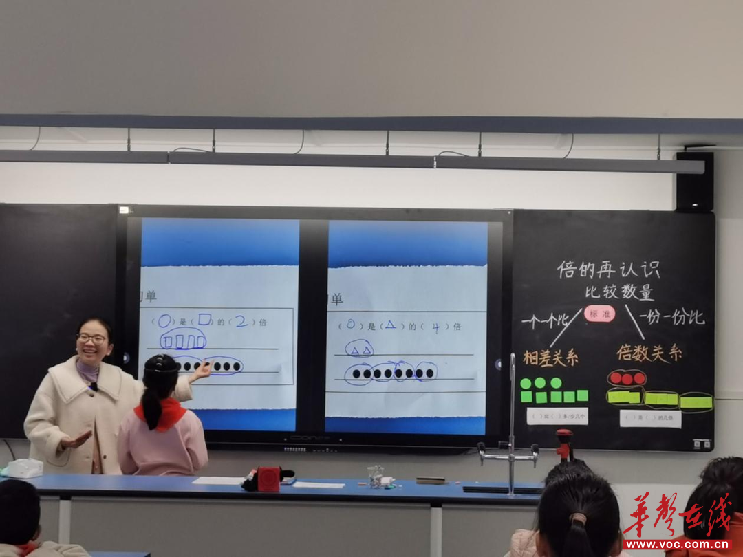 数学课上,郭婉婷老师的《条形统计图》、姚佳莉老师的《连加连减》、李太萍老师的《倍的再认识》精准践行“数形结合”理念,通过直观演示与思维引导,帮助学生突破学习难点,构建数学模型。