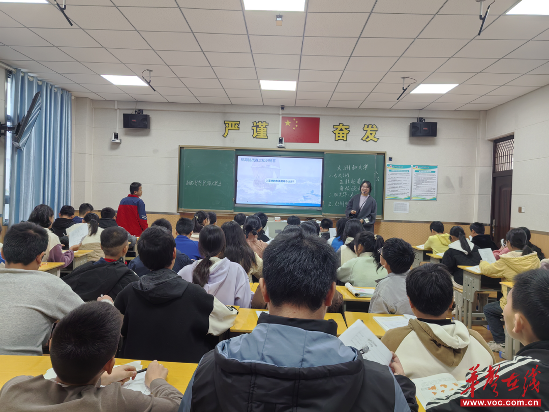 竞赛现场,各学科课堂亮点纷呈,参赛教师紧扣学科核心素养,精心设计教学环节,让知识传授更具趣味性与实效性。毛荷殿学校杨江丽老师执教《海洋资源》,以真实案例为依托,引导学生深度思考海洋可持续发展路径;芙蓉学校肖远洋老师在《大洲和大洋》课堂中,巧用动态地图与AI技术,生动还原麦哲伦航线,直观呈现海陆分布的内在关联;灵官殿中心学校杨辉老师则通过模拟实验讲解《海陆的变迁》,将抽象的地壳运动转化为可触摸的直观模型,有效激发学生探究自然奥秘的兴趣。