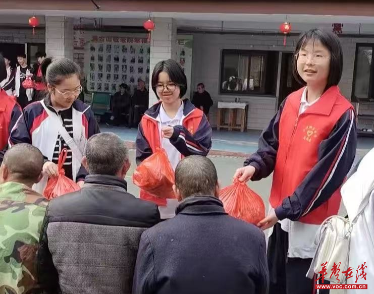 11月15日上午,2312、2313班的志愿者们怀揣着热忱与爱心,走进了零陵区黄古山敬老院,开启了一场意义非凡的慰问活动。志愿者们为老人分发精心准备的水果和小礼品、陪老人聊天,倾听他们讲述过去的故事、表演自己精心准备的节目。与此同时,另一组志愿者拿起扫帚,认真地清扫地面,不放过任何一个角落。他们整理房间,将老人们的居住环境布置得既整洁又温馨。